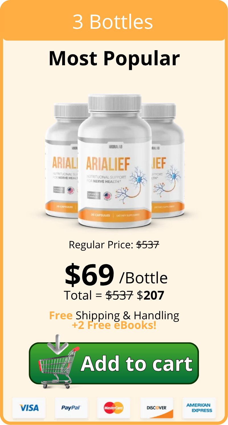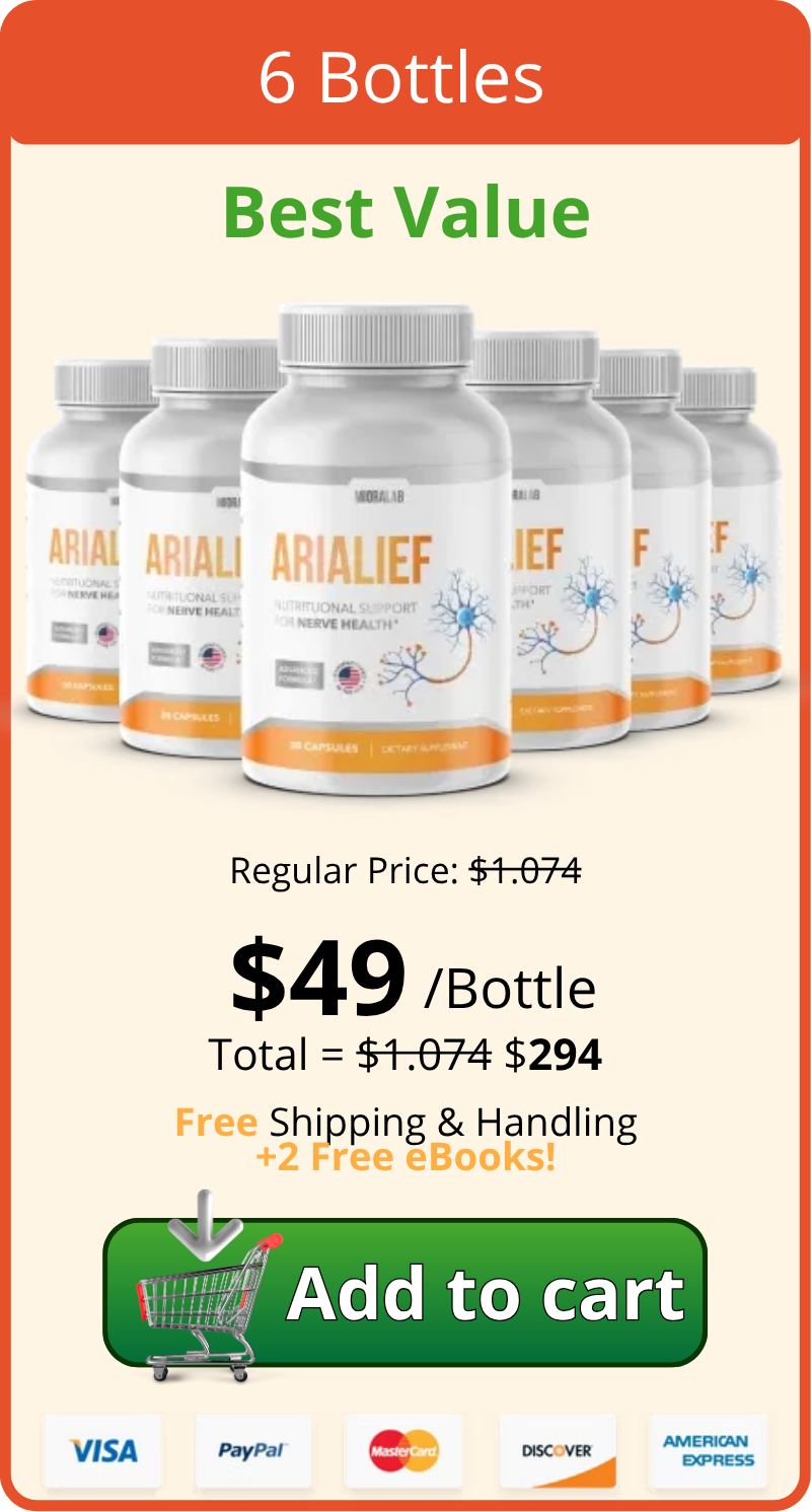 Arialief is a supplement specifically designed to relieve the burning, tingling, and numbness caused by Neuropathy. Its advanced formula is backed by research and combines scientifically proven ingredients that help soothe overactive nerves, promote healthy nerve function, and reduce inflammation.